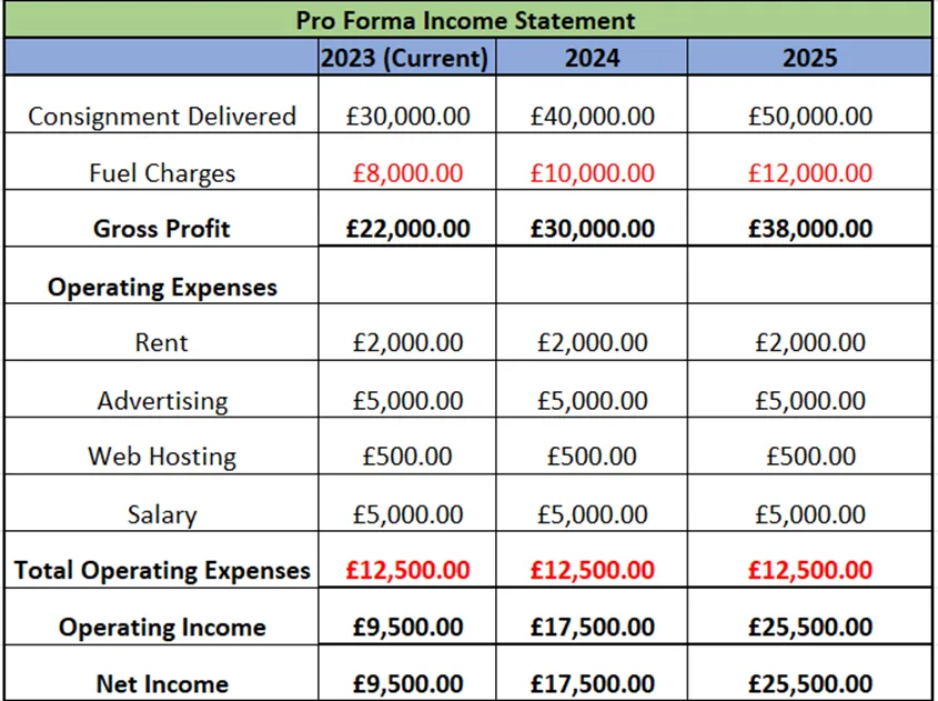 Once all the income and expenses are done, you will arrive at your profit or loss, and your pro forma statement will give you an insight into your expected earnings and spending for the desired period.