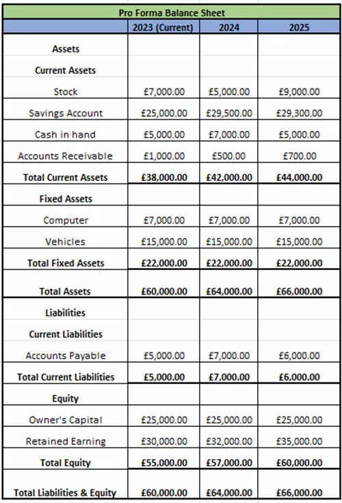 The info derived from the income statement and cash flow statement; you can easily prepare a pro forma balance sheet. But the critical aspect here is that you also need to consider your previous balance sheets through which you can use all your balances. The pro forma balance sheet will project all the changes in your accounts over the period, and you can plan from where you have the money and when you have to move the money.